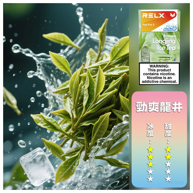 | RELX煙彈 | 零度薄荷, 芒果, 可樂冰, 葡萄, 哈密瓜, 橘子汽水, 雪碧, 西瓜冰, 草莓, 新薄荷, 鐵觀音, 龍井, 檸檬紅茶, 洛神花茶, 超涼青提, 紅牛, 西梅, 荔枝檸檬水, 蔓越莓, 荔枝, 新式綠妍, 綠寳石甜瓜, 超涼青檸, 綠豆冰, 金桔百香果, 鳳梨, 老冰棍, 蜜桃, 番石榴, 蜂蜜柚子, 蘋果, 葡萄蘋果, 藍莓, 香芋冰淇淋, 紅蘋果, 藍樹梅檸檬, 覆盆子冰, 經典煙草, 蜜桃烏龍茶, 混合莓果, 沙士, 紅茶, 青檸, 青提 |